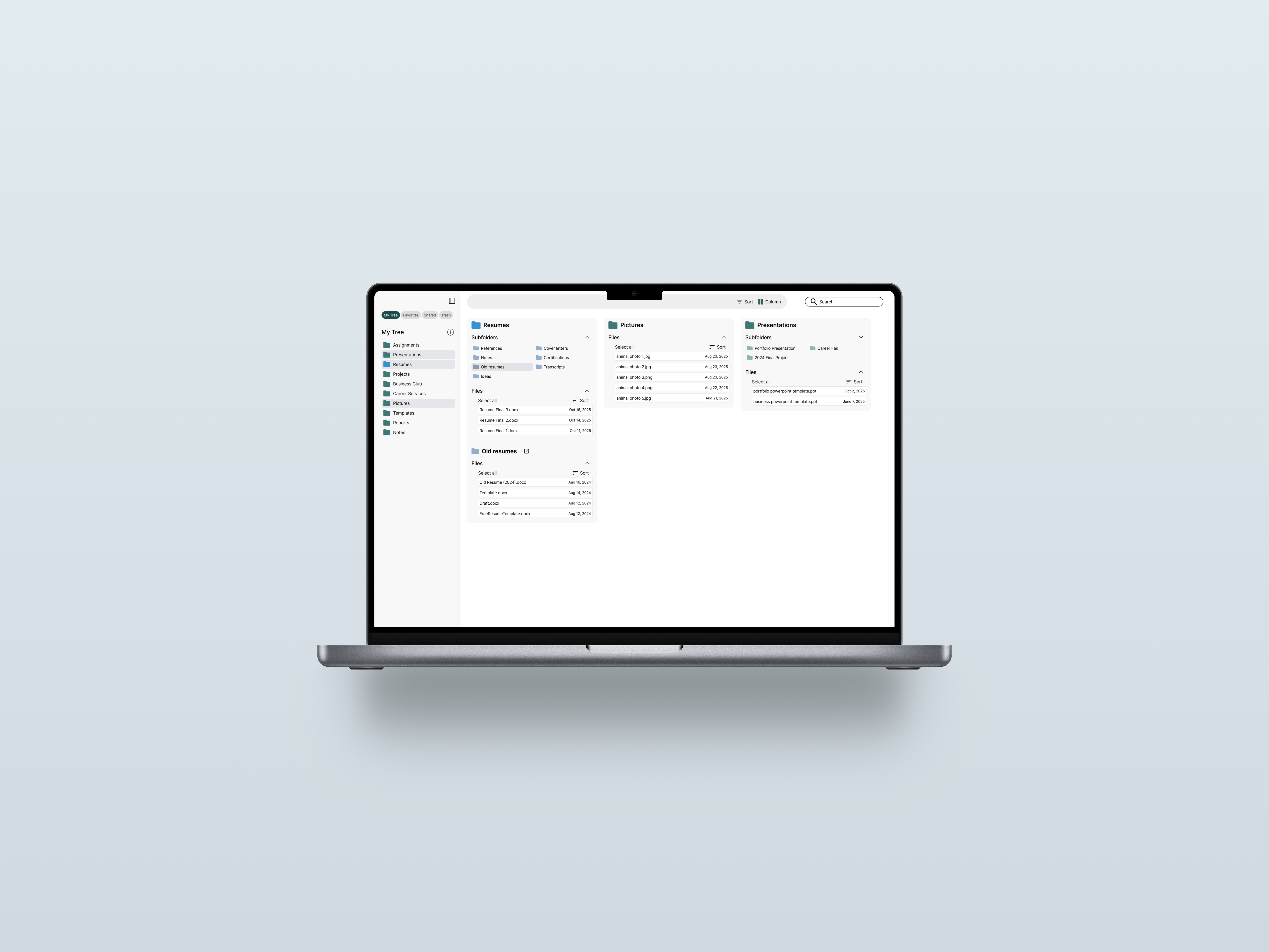 To solve navigation disorientation, I introduced a 3-panel layout reminiscent of macOS Finder. This gives users constant context. By flattening hierarchy into visible columns, users can always see where they came from and where they're going.