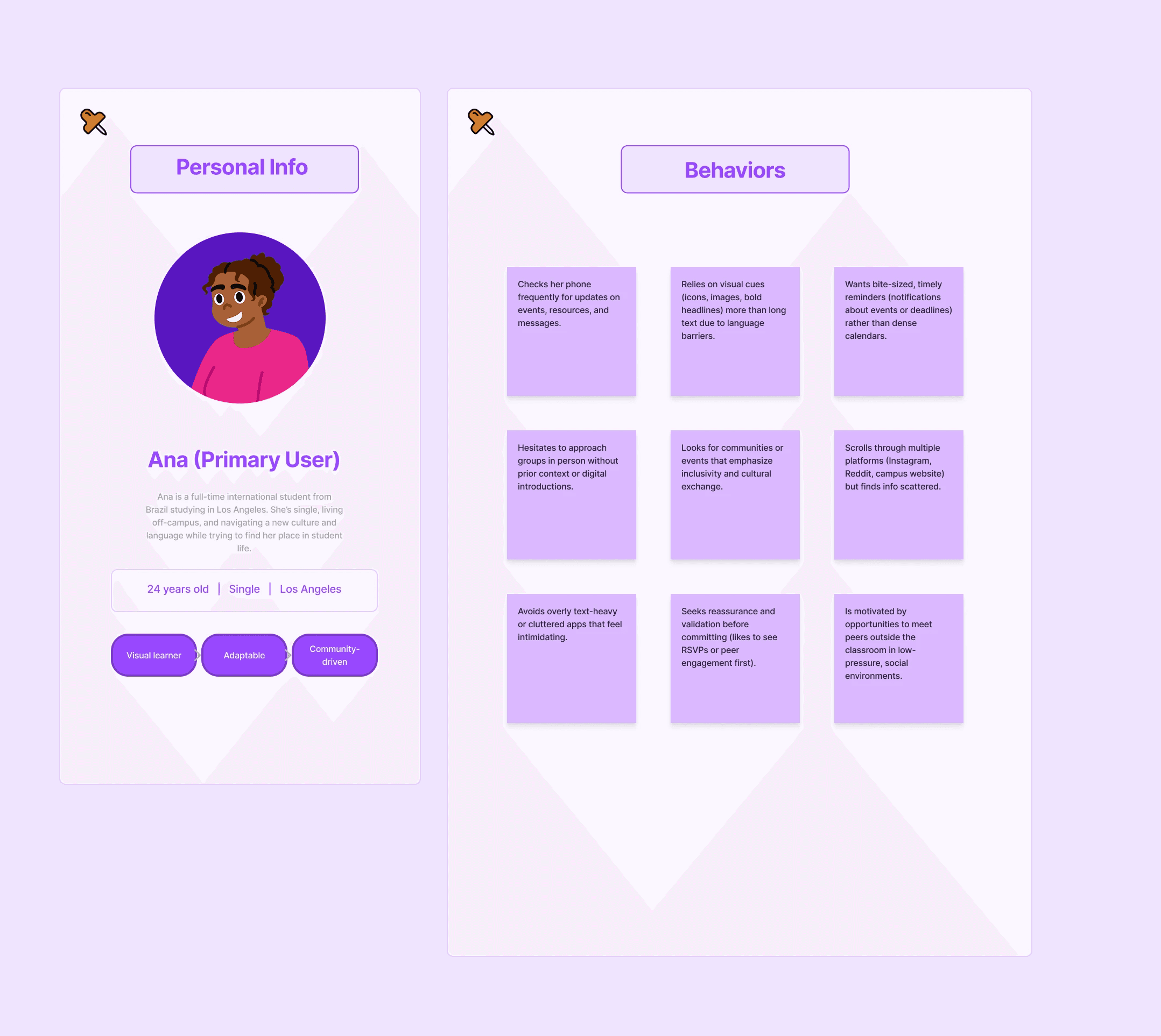 “Most events I hear about are after they’ve already happened. It makes staying connected with other students extremely difficult." - Ana, primary user