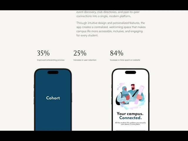 This project underscored that a successful solution isn't just about features, but about designing for real-world constraints like information sprawl and student schedules. I learned the critical importance of a mobile-first, centralized hub that prioritizes intuitive discovery over complex functionality, directly combating the fragmentation that isolates students. The outcome, Cohort, proves that a focused, user-centered platform can effectively bridge the gap between students and their campus community.